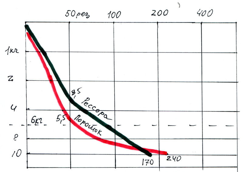 В общем сделано открытие, получена важнейшая цифра, а как мы этим распорядимся - будущее покажет. Важны две цифры: давление после 50-ти резов и количество резов при 6кг.